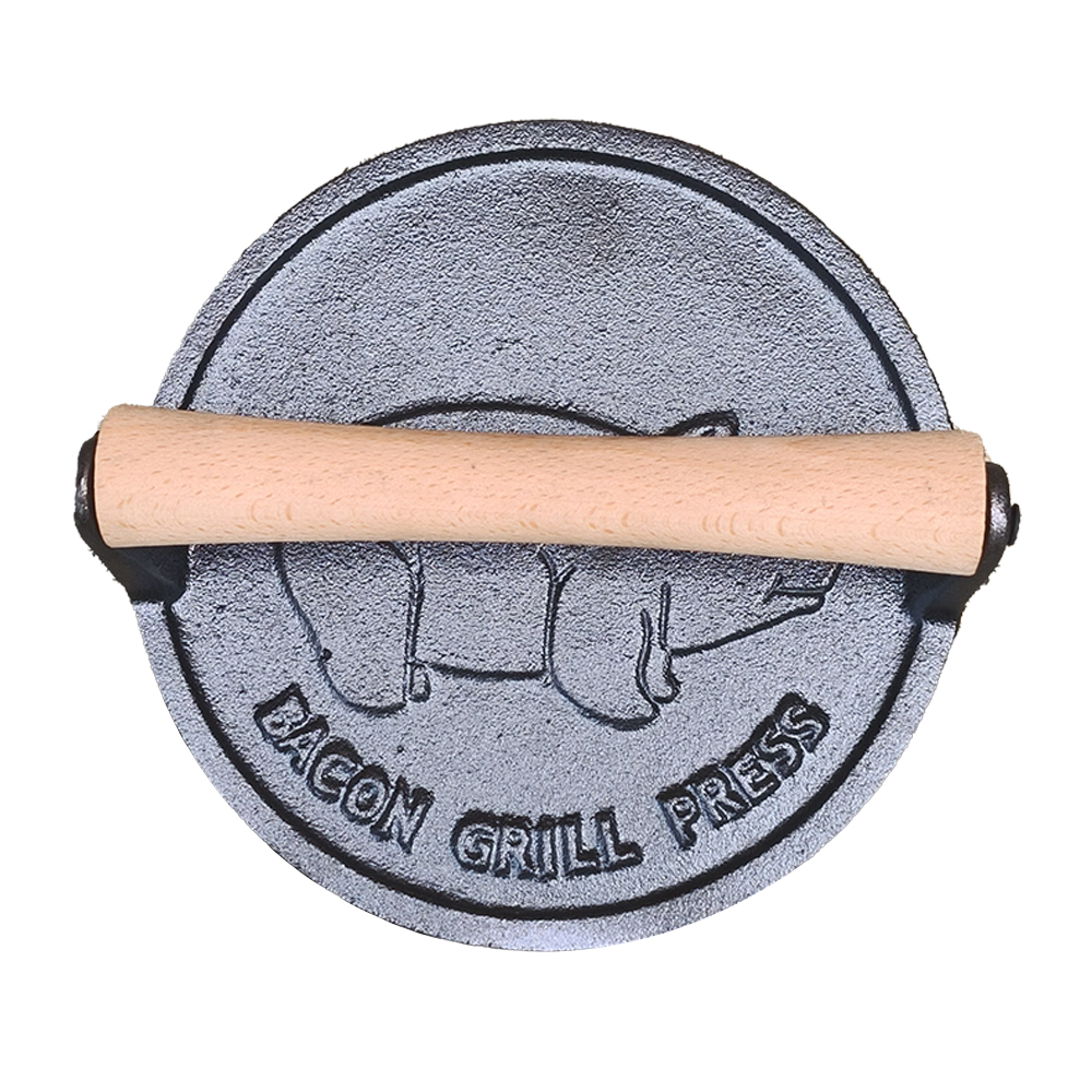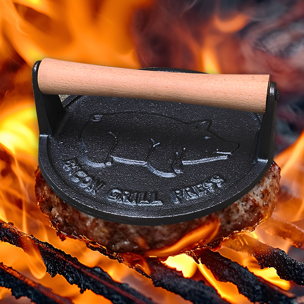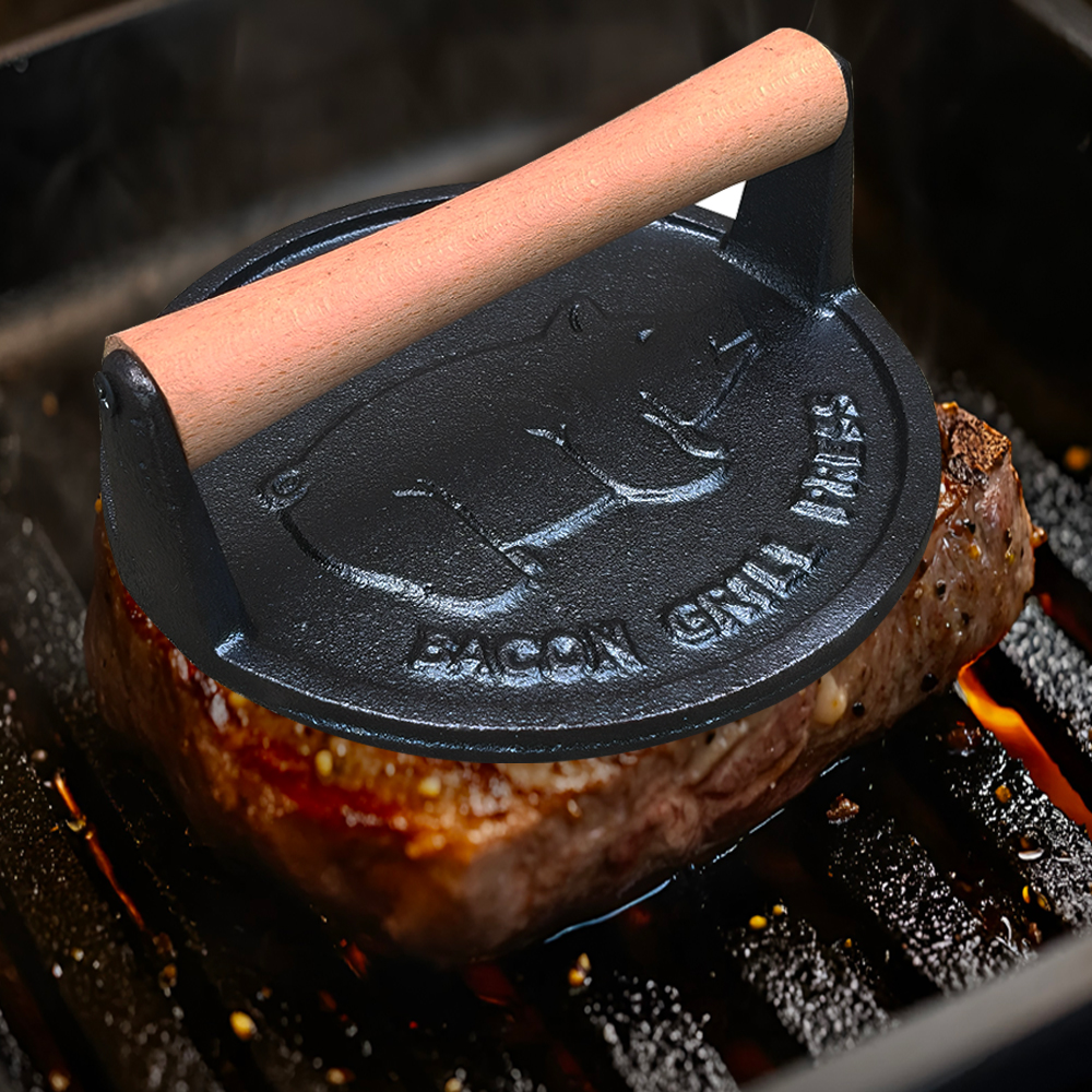 Our Heavy Duty Round Cast Iron Press Baking Meat Patty Tool is engineered and produced by a seasoned bbg grill manufacturer with decades of expertise in cast iron cookware and outdoor cooking gear. The manufacturer uses premium, food-grade cast iron for the press’s body—material that’s thick enough to withstand heavy use (even in busy commercial kitchens) and retains heat uniformly, so each patty cooks at the same temperature.