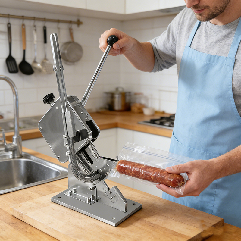 U-shape clipping mechanism, it creates tight, secure seals on sausage links in one quick squeeze, preventing casings from bursting during cooking or storage. The manual operation requires no electricity, making it highly portable and suitable for both indoor and outdoor use (ideal for mobile food stalls or backyard sausage-making sessions).